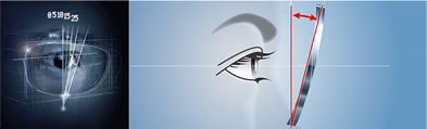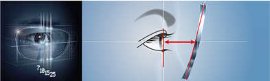 フレームカーブやフレームの種類等によりフレームそり角は異なり、視線とレンズが交差する角度が見え方に影響します。適正な数値入力により収差を補正。側方視してもスムーズな見やすさを提供します。