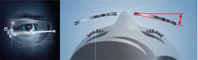 同じフレームでも顔の形状等によりフレーム前傾角は変化します。適正な数値入力により収差を補正。 設計を最適化して快適な見え心地を提供します。