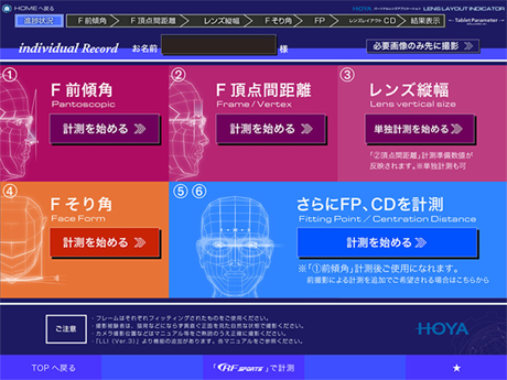 タケメガネでは、HOYA製の【individualメガネレンズシリーズ】をお客様に合わせていくために、HOYA製ipadアプリ【Lens LAYOUT INDICATOR(LLI)】を使用しています。